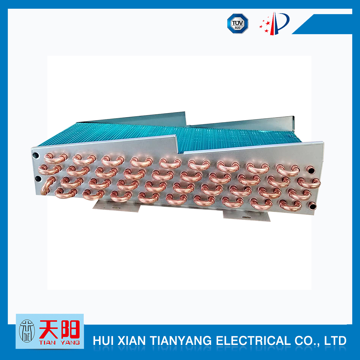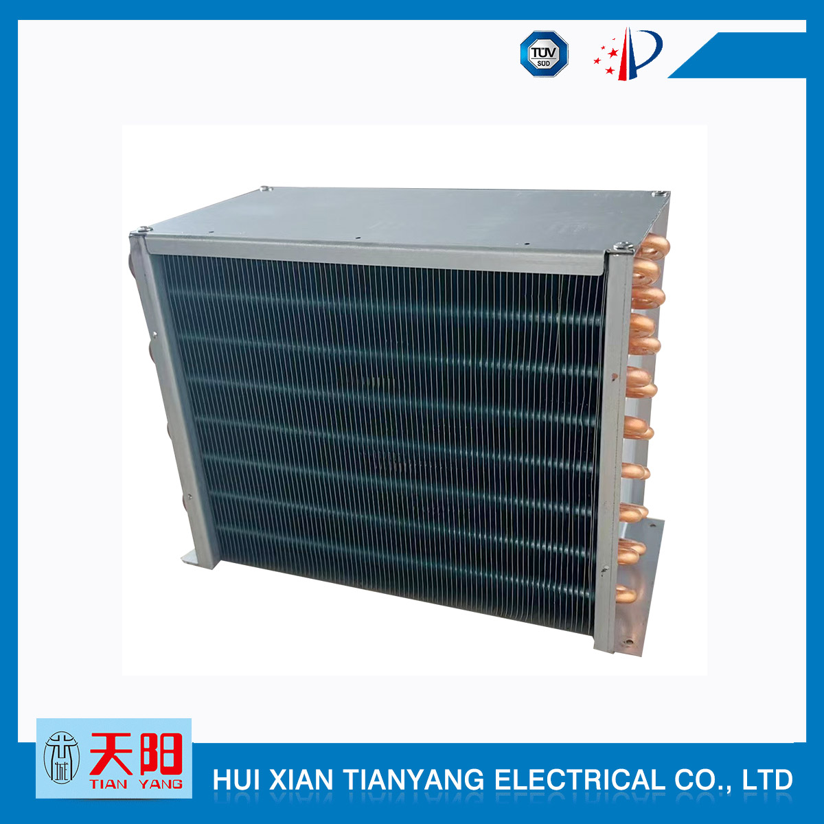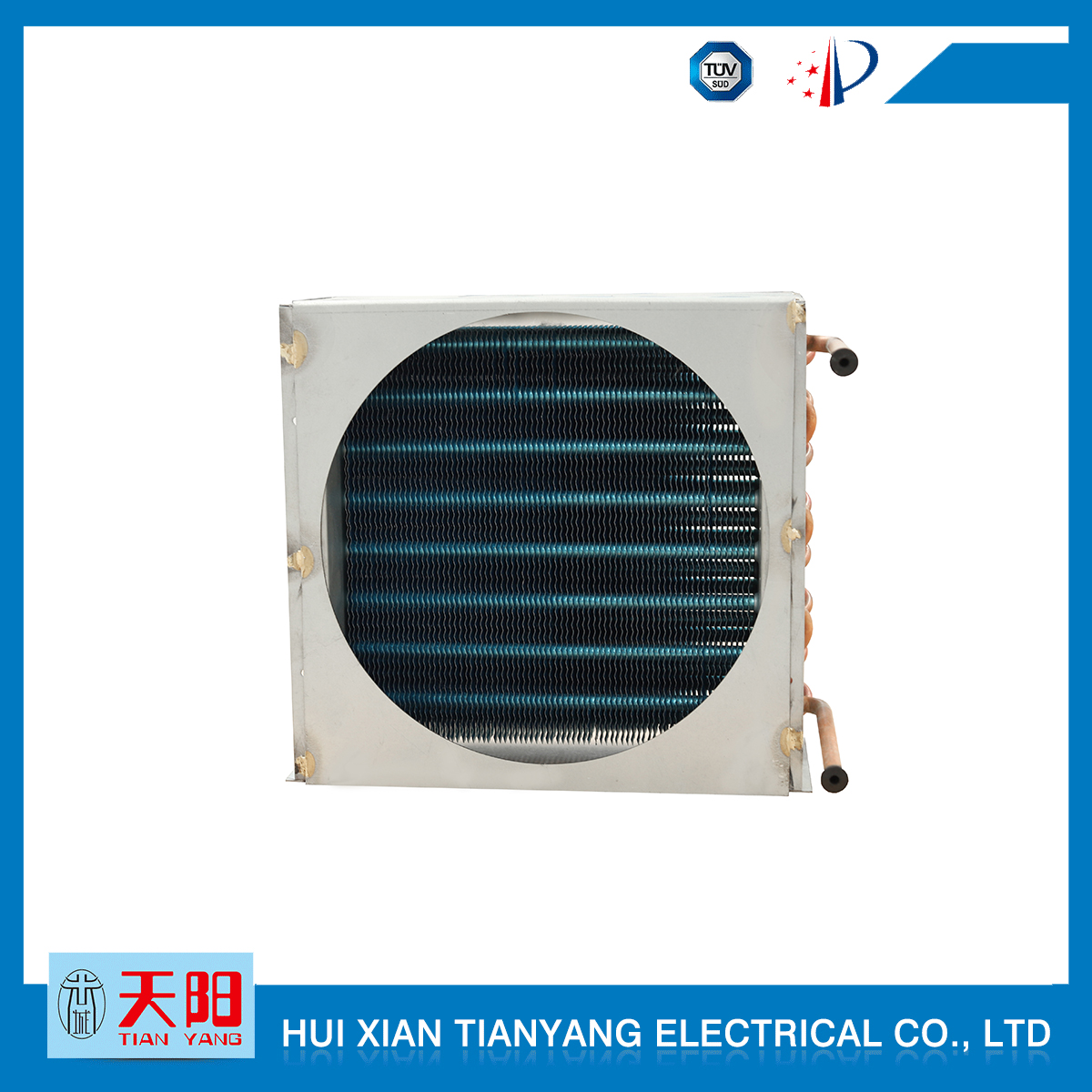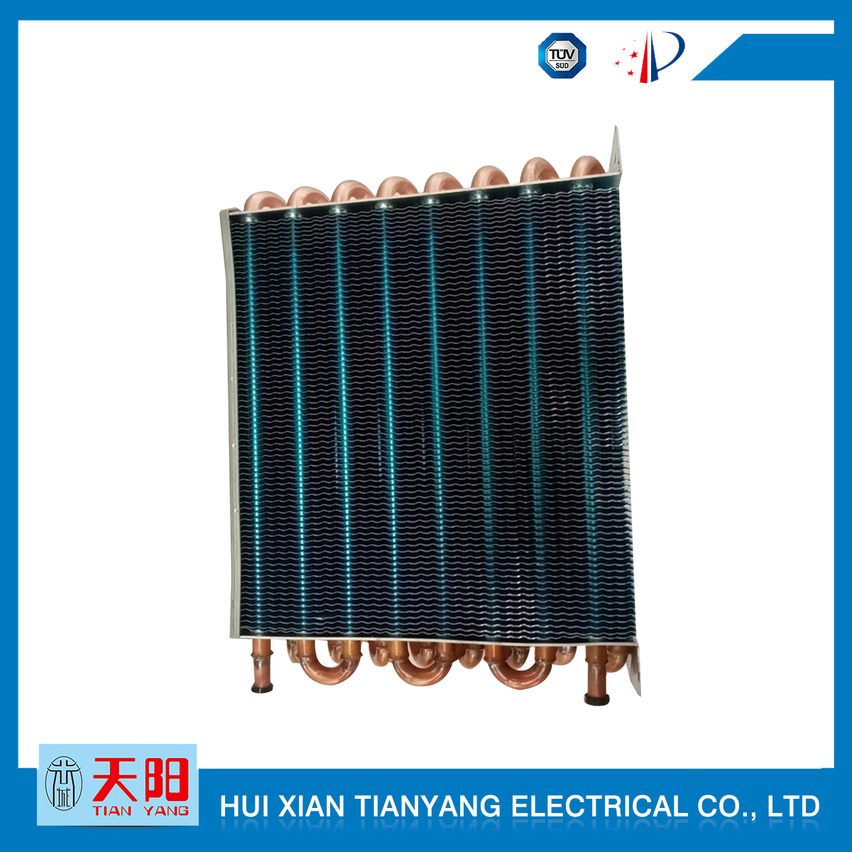 輝縣天陽(yáng)電器有限責(zé)任公司位于肥沃的中原河南省輝縣市學(xué)院路中段工業(yè)集聚區(qū)興業(yè)園3號(hào)廠房,以制冷設(shè)備用冷凝器,蒸發(fā)器,熱交換器為主。主要材料為銅管鋁翅片,銅管銅翅片,鋁管鋁翅片。廣泛應(yīng)用于冰箱冰柜,制冷設(shè)備,暖通設(shè)備,空調(diào),自動(dòng)售貨機(jī),冷干機(jī),超市立風(fēng)柜,冷藏車,烘干機(jī)等產(chǎn)品領(lǐng)域。  公司自1998年成立以來(lái),始終堅(jiān)持:“科技造就產(chǎn)業(yè)、質(zhì)量成就信譽(yù)、誠(chéng)信鑄就輝煌”的質(zhì)量方針,從產(chǎn)品拓展上堅(jiān)持“人無(wú)我有,人有我優(yōu),人優(yōu)我特的”經(jīng)營(yíng)理念,25年來(lái),從1998年開始供應(yīng)河南冰熊集團(tuán)下屬的冷柜廠,制冰機(jī)廠各種冷凝器;2003年之后,原冰熊集團(tuán)的精英志士開始在全國(guó)各地發(fā)展,所到之處依托我公司供貨,以致于多家目前已具行業(yè)中佼佼者的公司,從而建立了如凱雪公司,兆邦公司、凌云公司、海寶公司、正雪公司、上海忠云、山東德萊維等幾十余家公司在草創(chuàng)時(shí)期的啟蒙供貨商,友好共贏長(zhǎng)達(dá)十余年,成為我國(guó)制冷行業(yè)的供應(yīng)商。以致在2015年初雙匯集團(tuán)面向社會(huì)的招標(biāo)書中指名要我公司冷凝器、蒸發(fā)器指定產(chǎn)品供應(yīng)商